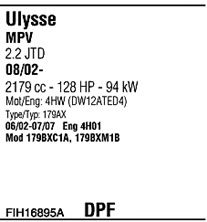 Для транспортных средств с дизельным фильтром тонкой очистки; до года вып. - 09/2003; код двигателя - 4HW; до номера шасси - NR.PR.09800; тип модели - 179BXC1A