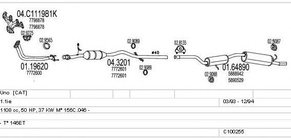 Раб. объем (округленный) - 1,1; тип модели - 146ET; Число дверей - AA; начиная с г. вып. - 03/1993; раб. объем (точн.) - 1108; код двигателя - 156C.046; Исполнение днищевой планки - Kat; мощность - 37