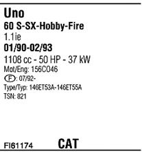 Раб. объем (округленный) - 1,1; тип модели - 146ET; Число дверей - AA; начиная с г. вып. - 03/1993; раб. объем (точн.) - 1108; код двигателя - 156C.046; Исполнение днищевой планки - Kat; мощность - 37