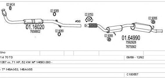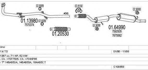 Раб. объем (округленный) - 1,4; тип модели - 164A65CT; Число дверей - C; до года вып. - 11/1988; раб. объем (точн.) - 1367; с № шасси - >7077535; до номера шасси - <7344766; мощность - 52