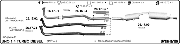 Раб. объем (округленный) - 1,4; тип модели - 146AG55; Число дверей - B; начиная с г. вып. - 09/1989; раб. объем (точн.) - 1367; код двигателя - 146B3.000; мощность - 52