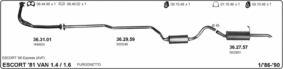 Глушитель в сборе: FORD, ESCORT '86 Courrier (AVF)