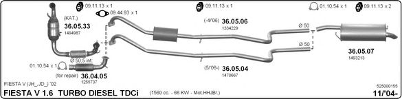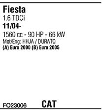 Раб. объем (округленный) - 1,6; тип модели - TDCi TD; до года вып. - 11/2005; раб. объем (точн.) - 1560; код двигателя - HHJA; Исполнение днищевой планки - Kat; мощность - 66