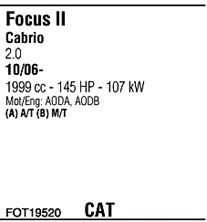 Раб. объем (округленный) - 2; тип модели - i 16V; вар. оснащения - Cabrio Coupé; начиная с г. вып. - 03/2007; до года вып. - 07/2011; раб. объем (точн.) - 1988; код двигателя - SIDA; Исполнение днищевой планки - Kat; мощность - 107