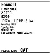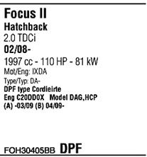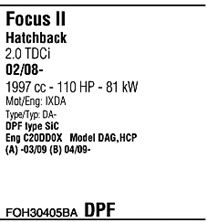 код двигателя - IXDA; Для транспортных средств с дизельным фильтром тонкой очистки