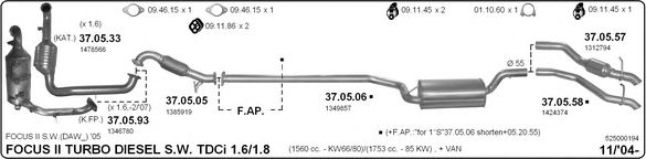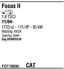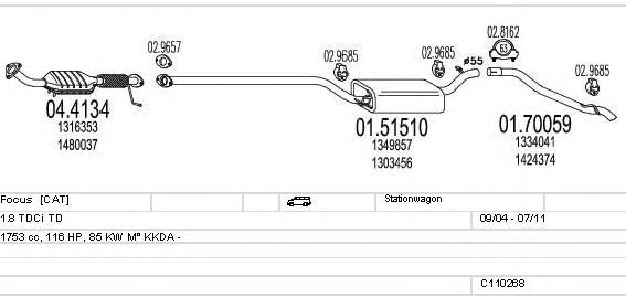 Раб. объем (округленный) - 1,8; тип модели - TDCi TD; вар. оснащения - Stationwagon; до года вып. - 07/2011; раб. объем (точн.) - 1753; код двигателя - KKDA; Исполнение днищевой планки - Kat; мощность - 85