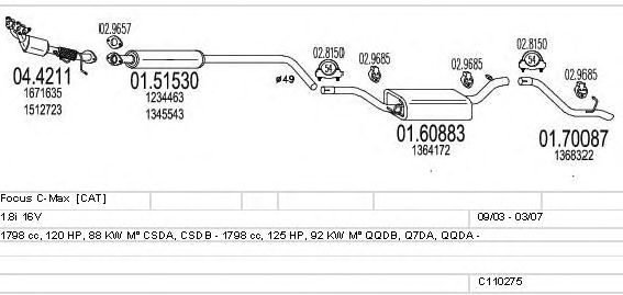 Глушитель в сборе: FORD, FOCUS C-MAX