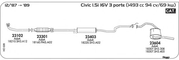 Глушитель в сборе: HONDA, CIVIC Mk III Наклонная задняя часть (EC, ED, EE)