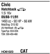 С регулируемым катализатором (3-х ступенчатый); до года вып. - 12/1989; код двигателя - D15B2; тип модели - ED6
