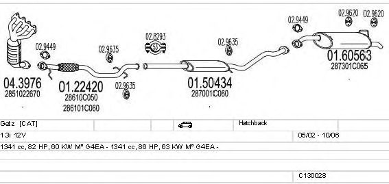 Раб. объем (округленный) - 1,3; тип модели - i 12V; вар. оснащения - Hatchback; раб. объем (точн.) - 1341; код двигателя - G4EA; Исполнение днищевой планки - Kat; мощность - 60
