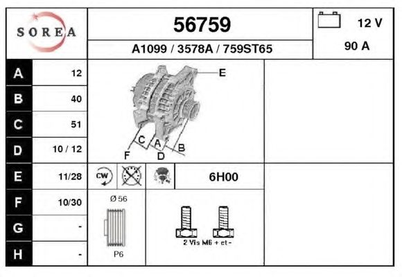 Напряжение [В]: 12 Сила тока [A]: 90 Направление вращения: По часовой стрелке Опции: С встроенным регулятором Номер технической информации: C34 Соединение/клемма: Без подключения к тахометру Количество ребер: 6 Ременной шкив: Со ремённым шкивом Диаметр [мм]: 56
