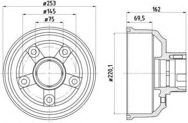 Общ. высота торм. барабана [мм]: 162