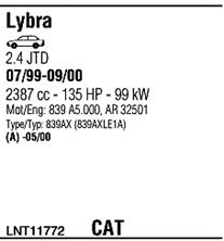 Раб. объем (округленный) - 2,4; тип модели - JTD; вар. оснащения - Sedan Stationwagon; начиная с г. вып. - 09/1999; раб. объем (точн.) - 2387; Исполнение днищевой планки - Kat; мощность - 96