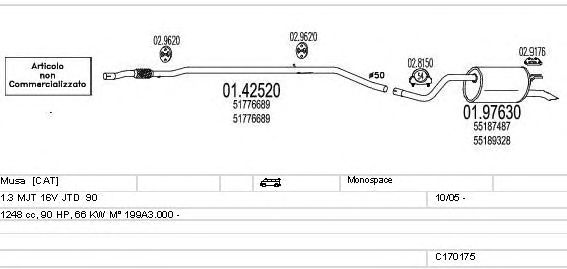 Раб. объем (округленный) - 1,3; тип модели - MJT 16V JTD 90; вар. оснащения - Monospace; раб. объем (точн.) - 1248; код двигателя - 199A3.000; Исполнение днищевой планки - Kat; мощность - 66