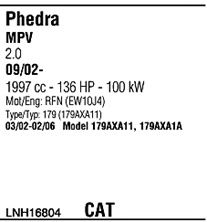 до года вып. - 02/2006; код двигателя - RFN (EW10J4); тип модели - 179AXA1A