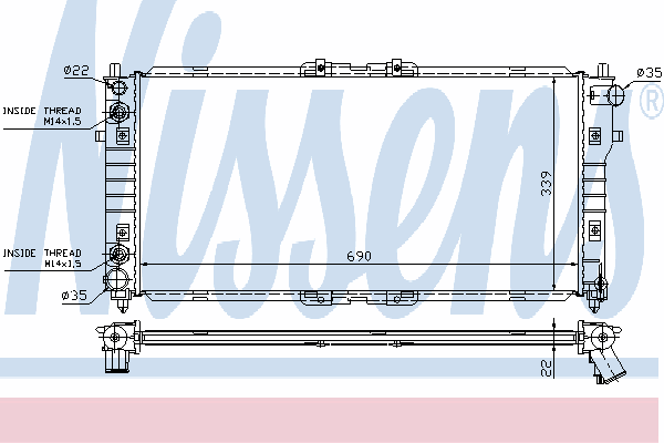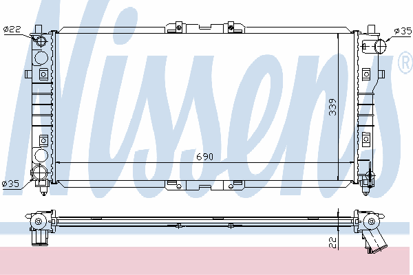 Вид коробки передач: Механическая коробка передач Оснащение / оборудование: Для транспортных средств с/без кондиционером Размеры радиатора: 690 X 339 X 22 mm