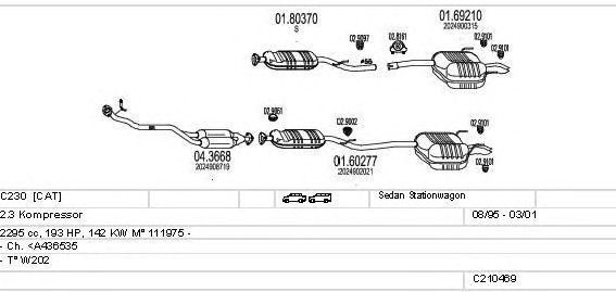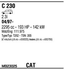 Раб. объем (округленный) - 2,3; тип модели - W202; вар. оснащения - Sedan Stationwagon; Число дверей - A; раб. объем (точн.) - 2295; код двигателя - 111975; до номера шасси -