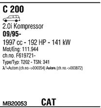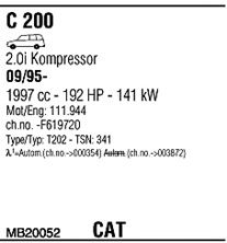 Раб. объем (округленный) - 2; тип модели - W202; вар. оснащения - Stationwagon; Число дверей - A; раб. объем (точн.) - 1998; код двигателя - 111944; до номера шасси -