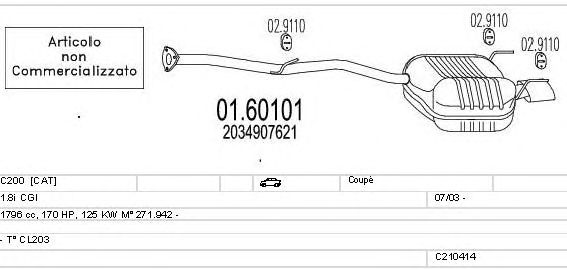 Раб. объем (округленный) - 1,8; тип модели - CL203; вар. оснащения - Coupé; Число дверей - A; начиная с г. вып. - 07/2003; раб. объем (точн.) - 1796; код двигателя - 271.942; Исполнение днищевой планки - Kat; мощность - 125