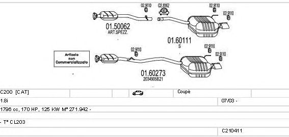 Раб. объем (округленный) - 1,8; тип модели - CL203; вар. оснащения - Coupé; Число дверей - B; начиная с г. вып. - 07/2003; раб. объем (точн.) - 1796; код двигателя - 271.942; Исполнение днищевой планки - Kat; мощность - 125