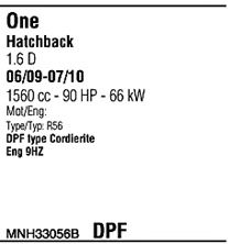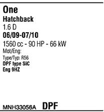Для транспортных средств с дизельным фильтром тонкой очистки; код двигателя - W16; тип модели - R56