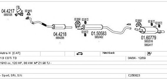 Раб. объем (округленный) - 1,9; тип модели - CDTi TD; вар. оснащения - Hatchback; Число дверей - AA5; до года вып. - 12/2009; раб. объем (точн.) - 1910; код двигателя - Z1.9DTH; Исполнение днищевой планки - Kat; мощность - 110