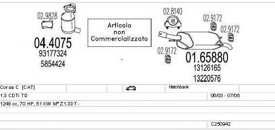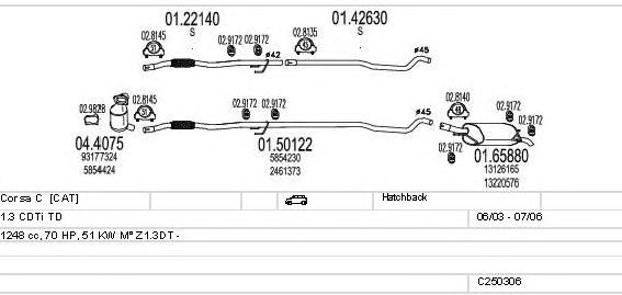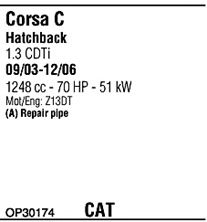 Раб. объем (округленный) - 1,3; тип модели - CDTi TD; вар. оснащения - Hatchback; до года вып. - 07/2006; раб. объем (точн.) - 1248; код двигателя - Z1.3DT; Исполнение днищевой планки - Kat; мощность - 51