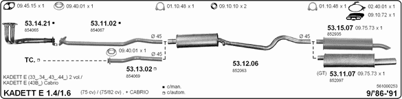 Глушитель в сборе: OPEL, KADETT E кабрио (43B_)