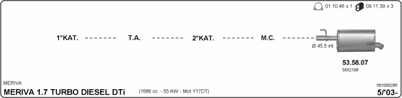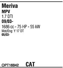 Раб. объем (округленный) - 1,7; тип модели - DTi TD; вар. оснащения - Monospace; до года вып. - 12/2005; раб. объем (точн.) - 1686; код двигателя - Y1.7DT; Исполнение днищевой планки - Kat; мощность - 55