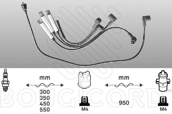 Длина кабеля [мм]: 145 / 325 / 345 / 395 Количество: 4 Провод зажигания: Исполнение соединения SAE / Сопротивление провода зажигания Катушка зажигания: Исполнение соединения М4 для патрубка диаметром [мм]: 7