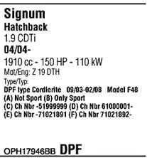 код двигателя - Z 19 DTH; Для транспортных средств с дизельным фильтром тонкой очистки