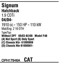 код двигателя - Z 19 DTH; Для автомобилей без фильтра копоти