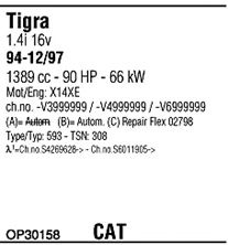 до года вып. - 12/1997; код двигателя - X14XE; тип модели - 593; до номера шасси - -V6999999