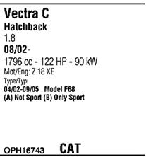 С регулируемым катализатором (3-х ступенчатый); код двигателя - Z18XE; с № шасси - 61000001; вар. оснащения - Sport
