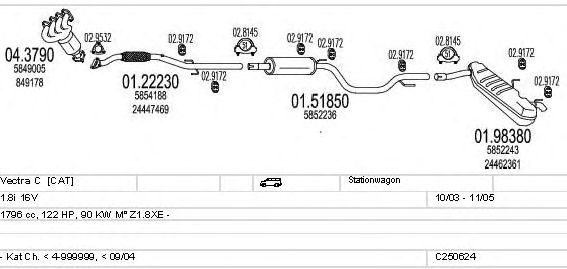 Раб. объем (округленный) - 1,8; тип модели - i 16V; вар. оснащения - Stationwagon; Число дверей - b; до года вып. - 11/2005; раб. объем (точн.) - 1796; код двигателя - Z1.8XE; Исполнение днищевой планки - Kat; мощность - 90