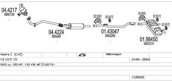 Раб. объем (округленный) - 1,9; тип модели - CDTi TD; вар. оснащения - Stationwagon; Число дверей - A; до года вып. - 06/2009; раб. объем (точн.) - 1910; код двигателя - Z1.9DTH; Исполнение днищевой планки - Kat; мощность - 110