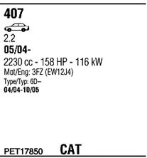 до года вып. - 07/2005; код двигателя - 3FZ (EW12J4); тип модели - 6D-