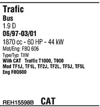 код двигателя - F8Q606; кроме вар. оснащения - Cat. converter