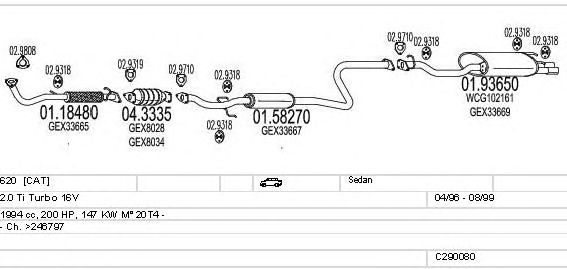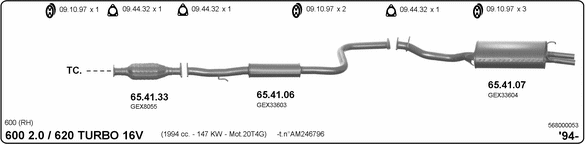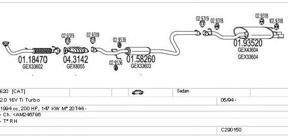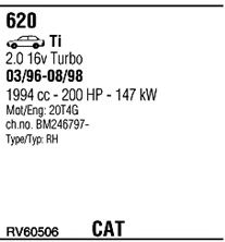 Раб. объем (округленный) - 2; тип модели - Ti Turbo 16V; вар. оснащения - Sedan; начиная с г. вып. - 04/1996; раб. объем (точн.) - 1994; код двигателя - 20T4; с № шасси - >246797; Исполнение днищевой планки - Kat; мощность - 147