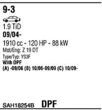 Для транспортных средств с дизельным фильтром тонкой очистки; код двигателя - Z19DTH