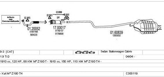 Раб. объем (округленный) - 1,9; тип модели - TD; вар. оснащения - Sedan Stationwagon C; раб. объем (точн.) - 1910; код двигателя - Z19DTH; Исполнение днищевой планки - Kat; мощность - 110