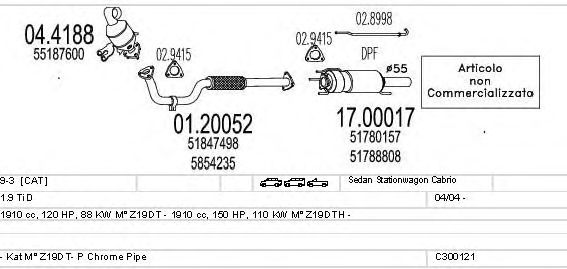 Раб. объем (округленный) - 1,9; тип модели - TD; вар. оснащения - Sedan Stationwagon C; раб. объем (точн.) - 1910; код двигателя - Z19DT; Исполнение днищевой планки - Kat; мощность - 88