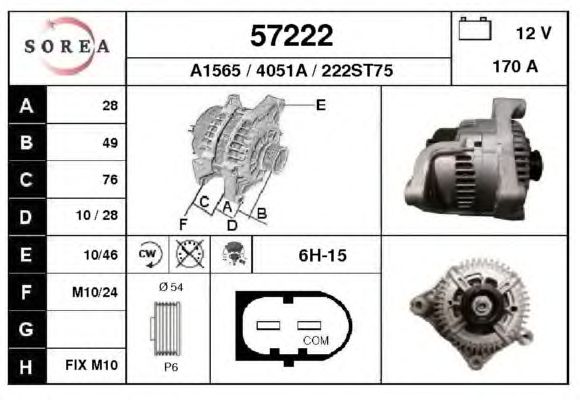 С встроенным регулятором. Напряжение: 12 В Сила тока: 170 A Диаметр: 54 мм Количество ребер: 6 Номер технической информации: C78 Соединение/клемма: без подключения к тахометру Направление вращения: по часовой стрелке Ременной шкив: со ремённым шкивом
