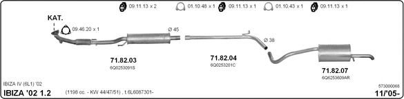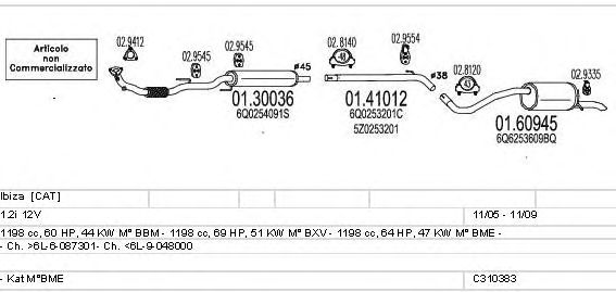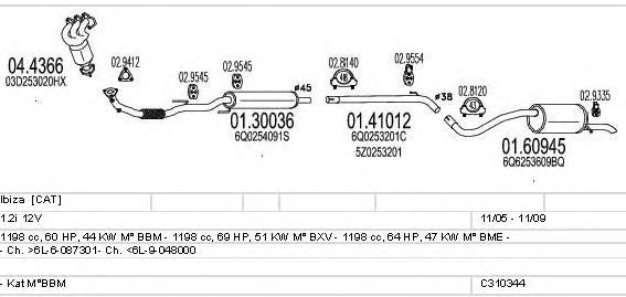 Раб. объем (округленный) - 1,2; тип модели - i 12V; Число дверей - B; раб. объем (точн.) - 1198; код двигателя - BBM; с № шасси - >6L-6-087301; до номера шасси - <6L-9-048000; Исполнение днищевой планки - Kat; мощность - 44