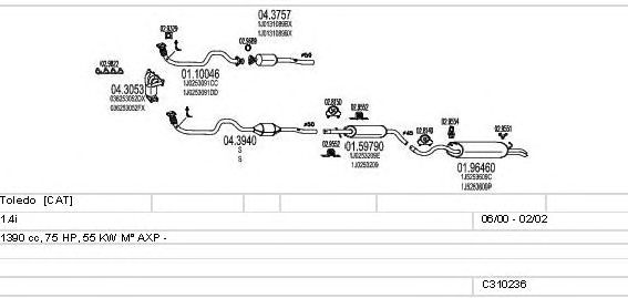 Раб. объем (округленный) - 1,4; тип модели - i; начиная с г. вып. - 06/2000; до года вып. - 02/2002; раб. объем (точн.) - 1390; код двигателя - AXP; Исполнение днищевой планки - Kat; мощность - 55