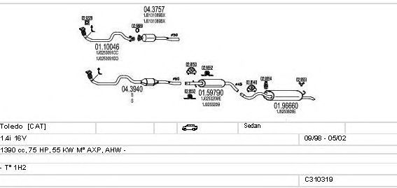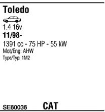 Раб. объем (округленный) - 1,4; тип модели - 1H2; вар. оснащения - Sedan; Число дверей - A; до года вып. - 05/2002; раб. объем (точн.) - 1390; код двигателя - AHW; Исполнение днищевой планки - Kat; мощность - 55