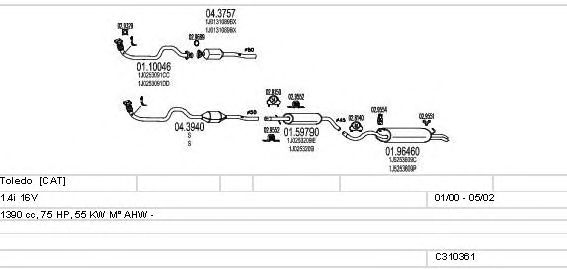 Раб. объем (округленный) - 1,4; тип модели - i 16V; Число дверей - B; начиная с г. вып. - 01/2000; до года вып. - 05/2002; раб. объем (точн.) - 1390; код двигателя - AHW; Исполнение днищевой планки - Kat; мощность - 55