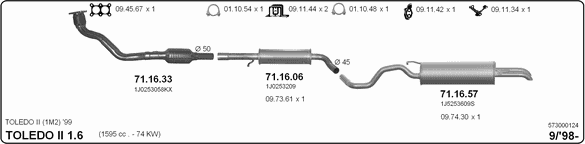 Глушитель в сборе: SEAT, TOLEDO Mk II (1M2)