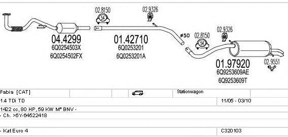 Глушитель в сборе: SKODA, FABIA Combi (6Y5)