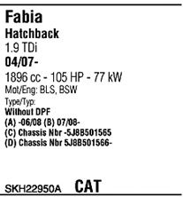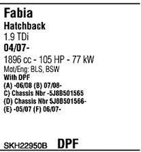 Раб. объем (округленный) - 1,9; тип модели - TDi TD; вар. оснащения - Hatchback; до года вып. - 12/2007; раб. объем (точн.) - 1896; код двигателя - BSW; до номера шасси - <5J-83095707; Исполнение днищевой планки - Kat; мощность - 77